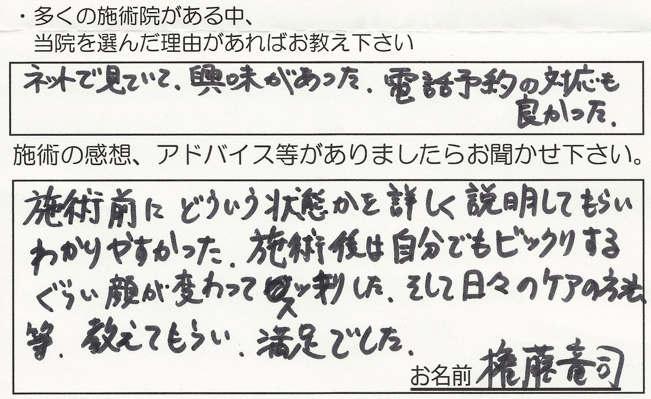 施術後は自分でもビックリするぐらい顔が変わってスッキリした、