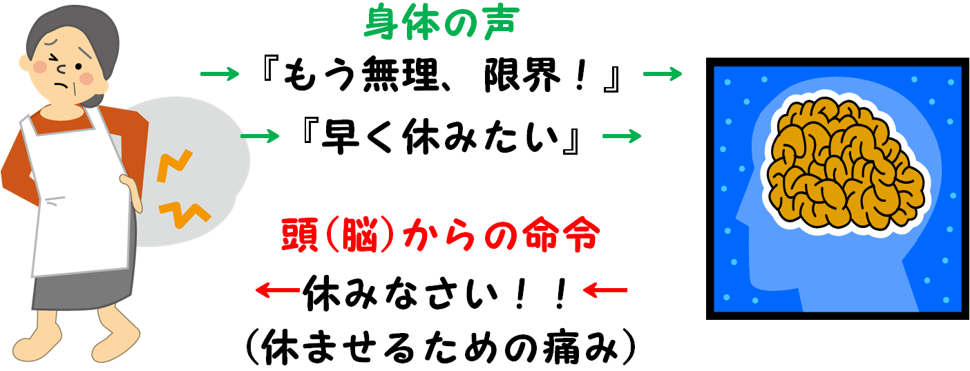 強制的に休んでもらうために身体に痛み・不調があらわれます。